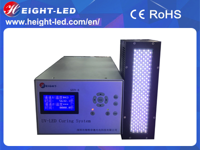 SZUV-II-FS20040-NH is a high-performance UVLED curing system, the system includes the controller, UVLED irradiation head and cable. UVLED head with imported high-intensity UV LED integrated UV spectral wavelength of 365nm, 385nm, 395nm, 405nm, the use of forced air cooling, the effective curing area of 200X40mm, support for external signal input and trigger, can be equipped with semi-automatic or fully automated production line .